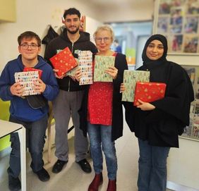 Zahraa Kaawar, Sven-Winfried Schwarz und Arda Cataloglu überbrachten die liebevoll verpackten Pakete persönlich.